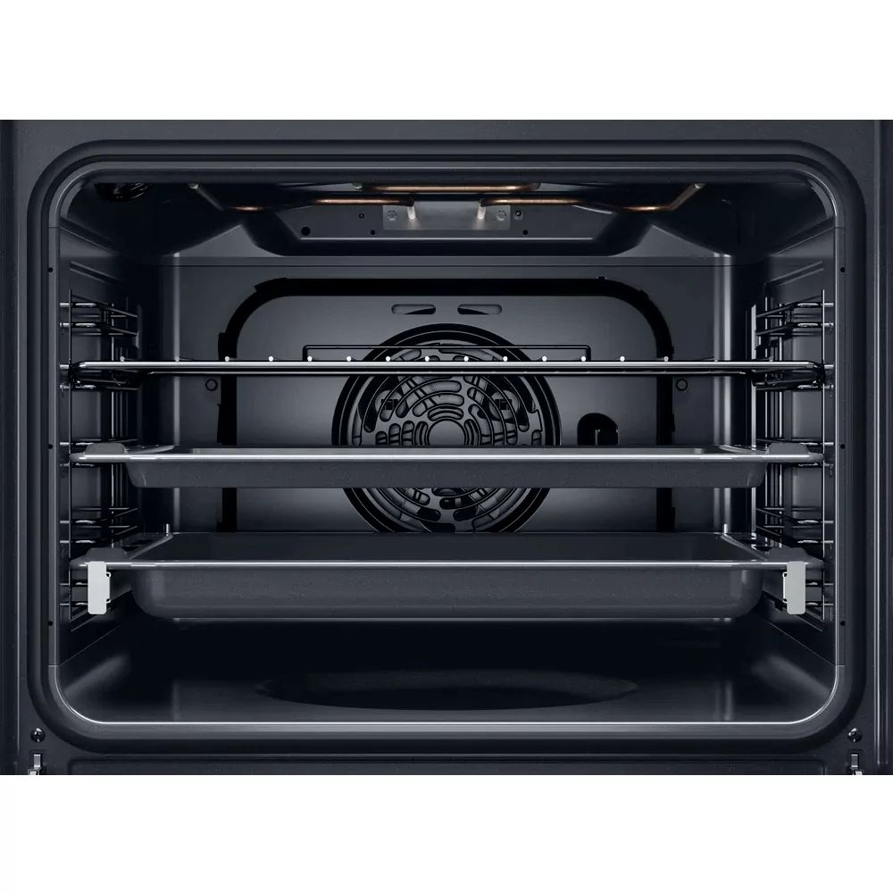 Електрична духовка Whirlpool OMR58HU1B у чорному нержавіючому корпусі об’ємом 71 л забезпечує об’ємне та зручне приготування різних страв. Функція Cook3 дозволяє готувати до трьох страв одночасно, не змішуючи аромати, а система SmartClean швидко очищує духовку без хімії лише за 30–35 хв — достатньо додати воду.