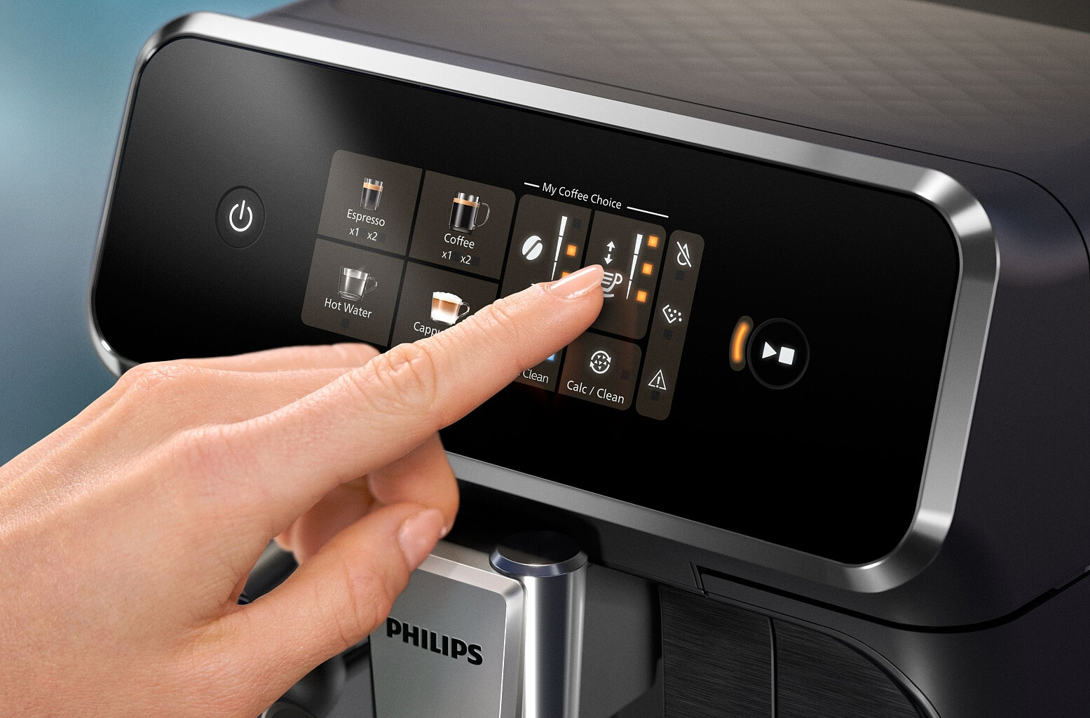 Ця модель із серії 2300 дозволяє готувати еспресо, каву, капучино або гарячу воду всього одним натисканням інтуїтивних сенсорних кнопок. Завдяки функції My Coffee Choice можна легко регулювати міцність, обʼєм та пінистість напою під ваш смак — і все це без складних меню управління та зайвих кроків :contentReference[oaicite:9]{index=9}.