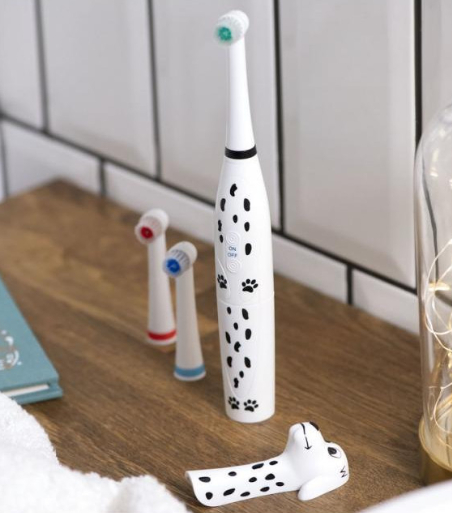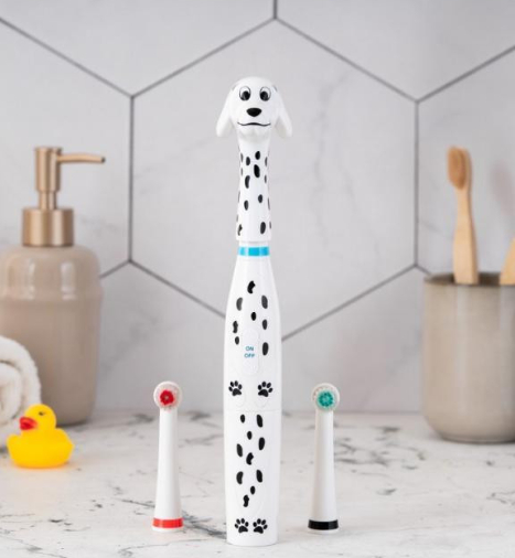 Дитяча електрична зубна щітка ARDESTO ETB-003DOG з унікальним дизайном у вигляді милої собачки-далматинця перетворює процес чищення зубів на захоплюючу гру. М'яка щетина ніжно очистить зуби дитини, забезпечуючи ретельний та дбайливий догляд. Клас захисту IPX6 – щітку можна мити під струменем води. Працює від двох батарей стандарту ААА, їх ресурсу вистачить на кілька тижнів безперервної роботи. Для дітей віком від 5 років.