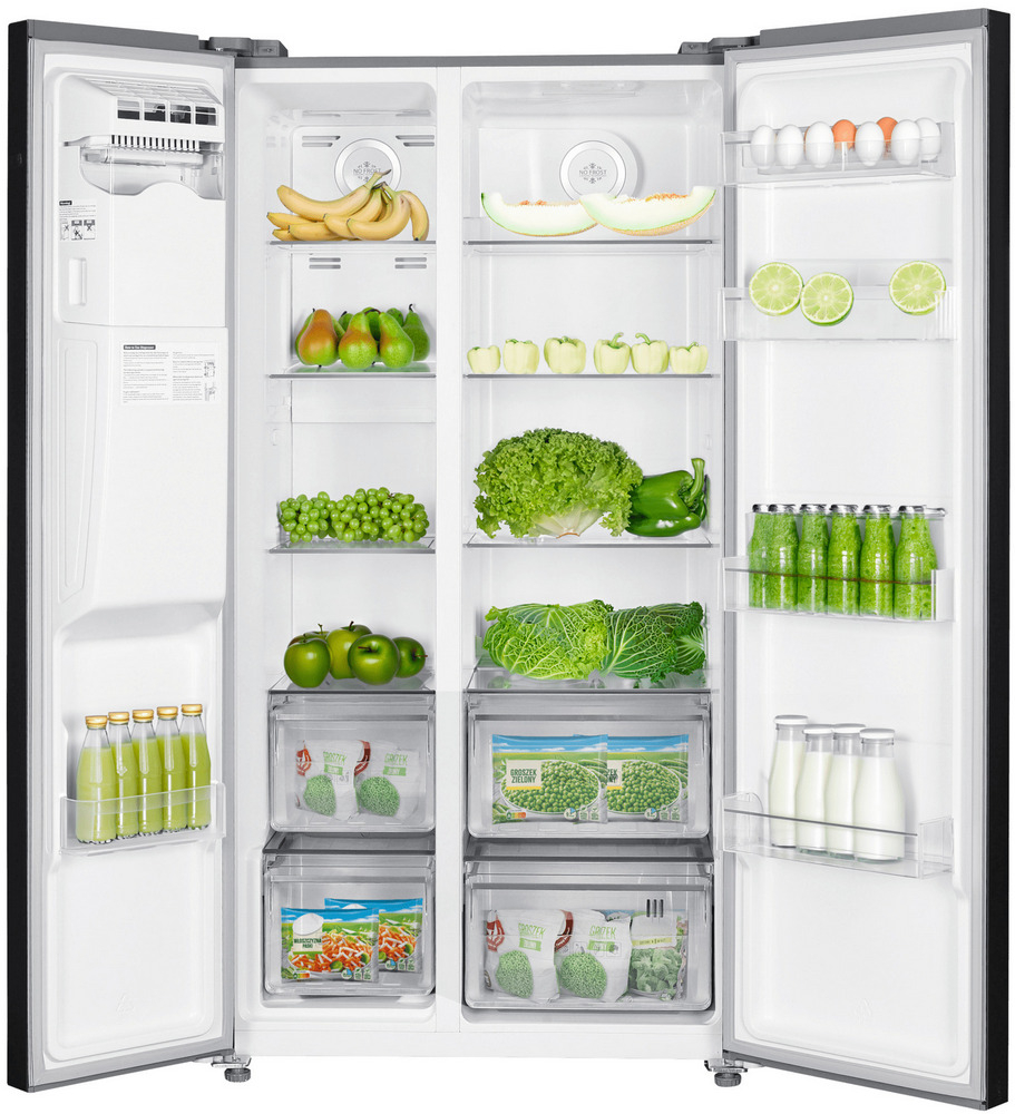 - Дводверна конструкція Side by Side: забезпечує зручний доступ до холодильної та морозильної камер.