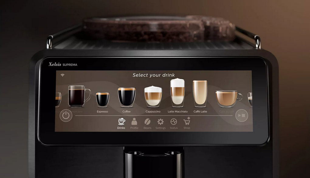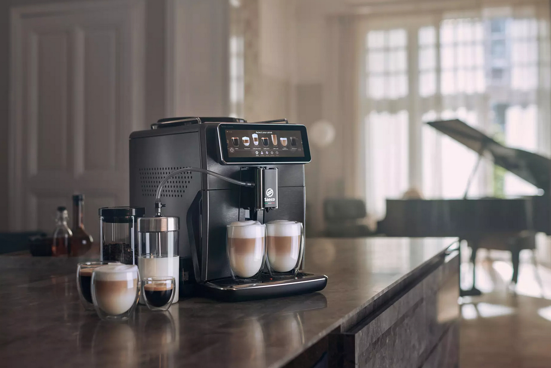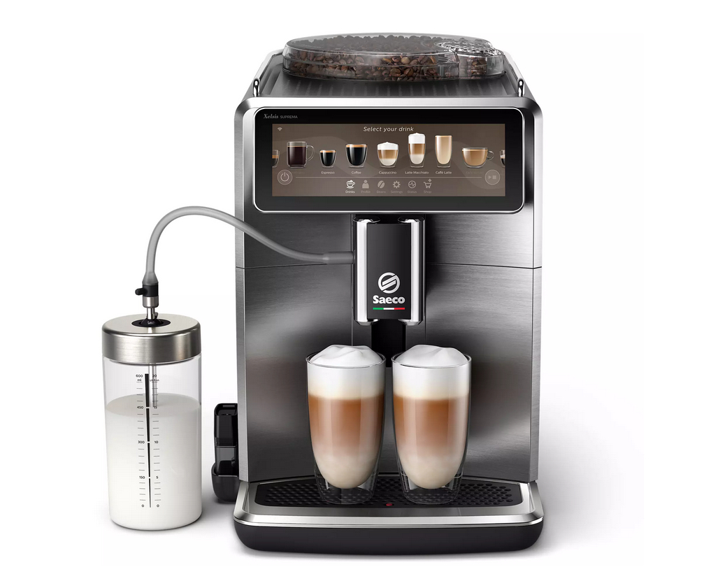 У світі, де кава перетворюється на персональний досвід, Saeco Xelsis Suprema SM8889/00 вирізняється розумним підходом до приготування кожного напою. Це не просто автоматична кавомашина — це інтелектуальний кавовий центр із сенсорним дисплеєм, профілюванням користувачів і бездоганною системою приготування молочних напоїв LatteDuo. Вона створена для тих, хто вимагає максимальної якості та контролю над смаком.