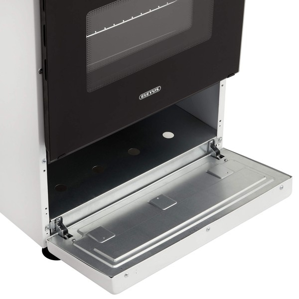 ELEYUS COMBO 5007 – кухонна плита з газовою варильною поверхнею та електричною духовкою об'ємом 52 л. Має захисну металеву кришку і регульовані ніжки, щоб змінити висоту плити і надійно встановити її. /span>