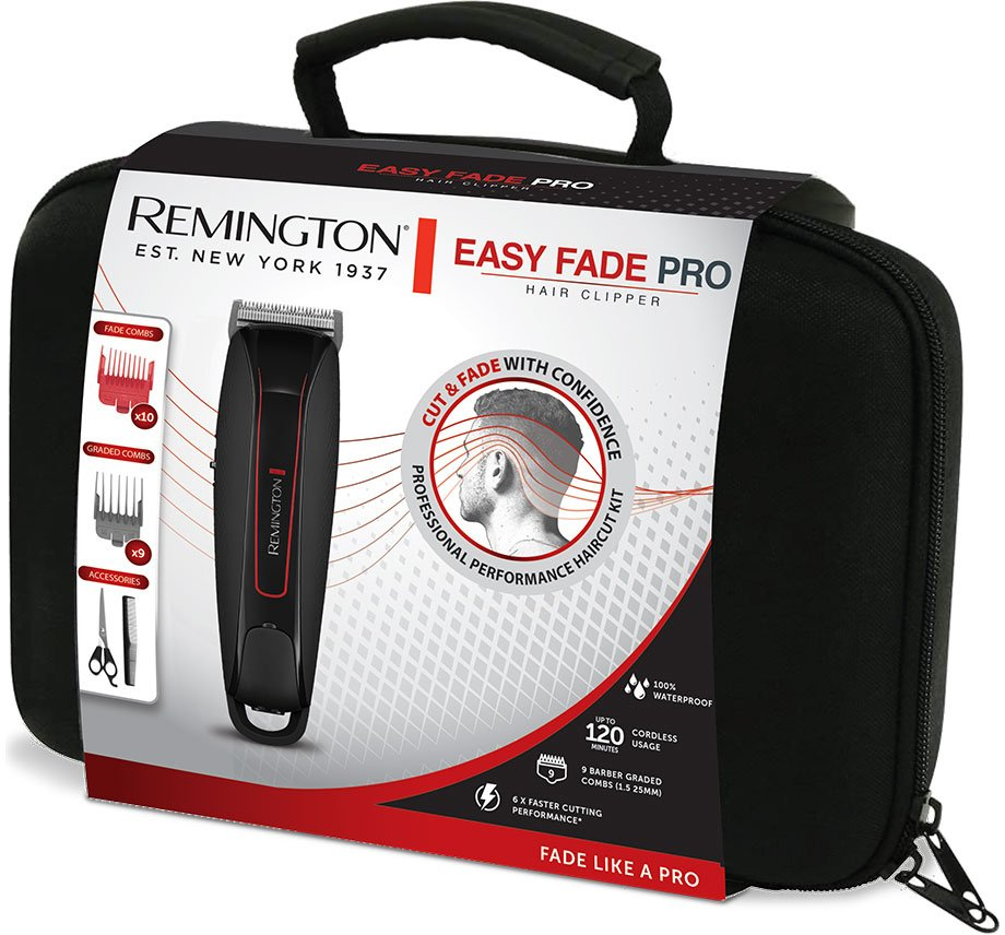 Машинка для стрижки волосся Remington Easy Fade Pro - це високошвидкісна машинка для стрижки з 6-кратною швидкістю, що ідеально підходить для укладання та укладання. 10 спеціально розроблених скошених гребінців для стрижки фейд допоможуть вам з легкістю створювати переходи між волоссям різної довжини. Набір із 9 прямих гребенів (1,5-25 мм) ідеально підходить для стрижки волосся різної довжини (ступінчаста стрижка). Навіть якщо стрижка фейд або ступінчаста стрижка для вас у новинку, за допомогою цієї машинки для стрижки волосся ви легко досягнете свого стилю.