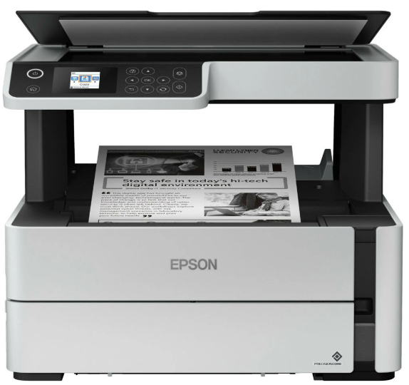 Epson М2140 – це компактне та зручне у використанні МФУ з великими ємностями для чорнила об'ємом замість картриджів. Завдяки своїй унікальній конструкції Фабрика друку Epson M2140 дозволяє друкувати документи з рекордно низькою собівартістю, а за рахунок використання пігментного чорнила відбитки миттєво висихають і не розмазуються при попаданні води або механічному впливі. Рекордно низька собівартість друку Завдяки великим ємностям та контейнерам з чорнилом по 120 мл ви зможете надрукувати великий обсяг документів за рекордно низькою ціною: всього 20 копійок за документ формату А4. Два контейнери з чорнилом ємністю по 120 мл поставляються разом з пристроєм. Завдяки цьому вже зі стартового комплекту чорнила можна роздрукувати до 11 000 документів, що, безсумнівно, дозволить заощадити, і суттєво знизить вартість володіння пристроєм. Високий ресурс витратних матеріалів Витратними матеріалами до монохромної фабрики друку служать тільки контейнери з чорнилом високим ресурсом. Так одного контейнера з чорним чорнилом вистачить на друк 6000 ч/б документів А4. Висока якість друку та надійність Монохромні принтери та МФУ серії «Фабрика друку Epson» – це унікальне поєднання надійної п'єзоелектричної технології друку Epson Micro Piezo та друкуючої конструкції із вбудованими ємностями для чорнила замість картриджів. Дана система дозволяє друкувати чорно-білі документи відмінної якості на високій швидкості та з низьким енергоспоживанням. Зручність роботи та безпечне транспортування пристрою За рахунок вбудованої в корпус чорнильної ємності Epson M2140 компактні та легко вписуються навіть у обмежений робочий простір. А фронтальне розташування цієї ємності дозволяє легко визначити рівень чорнила та зручно перезаправляти пристрій. Крім того, при заправці неможливо забруднитись – завдяки спеціальному клапану на контейнері чорнило не проливається повз (система «Ink lock»). Нова гарантія на Монохромну Фабрику друку Epson Підтвердженням високої надійності Фабрики друку Epson M2140 є надання гарантії на 36 місяців або 100 000 відбитків. Відбитки миттєво висихають; Чи не змащуються при виділенні маркером; Не розтікаються при попаданні води; Компактні розміри Кольорове сканування документів Цей пристрій дозволяє сканувати та копіювати документи завдяки вбудованому планшетному сканеру роздільною здатністю 1200х2400 dpi, а кольоровий РК-дисплей спростить вам керування пристроєм.