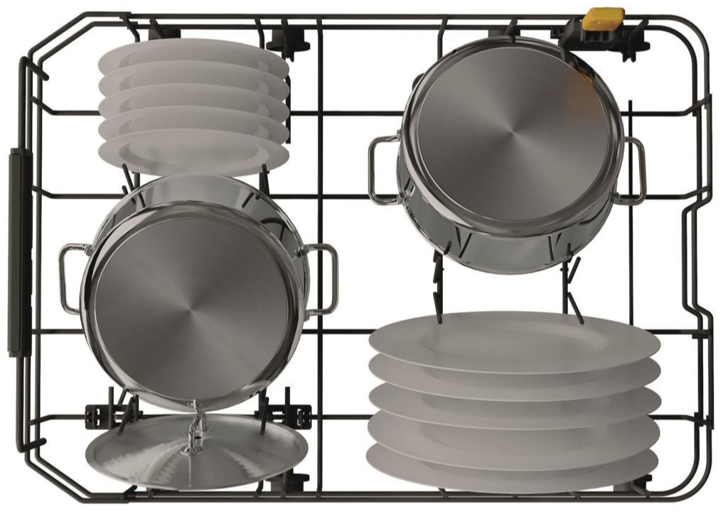 Модель пропонує 9 програм, серед яких інтенсивне миття, швидкий цикл 30 хвилин, делікатний режим та половинне завантаження. Опція PowerClean ефективно видаляє складні забруднення, а функція Overflow захищає від протікання. Три кошики забезпечують гнучке розташування посуду, включно з великогабаритними каструлями та сковорідками.