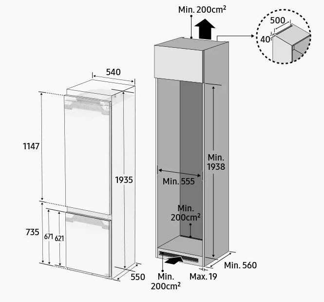 Тип товаруВбудований холодильник із морозильною камерою