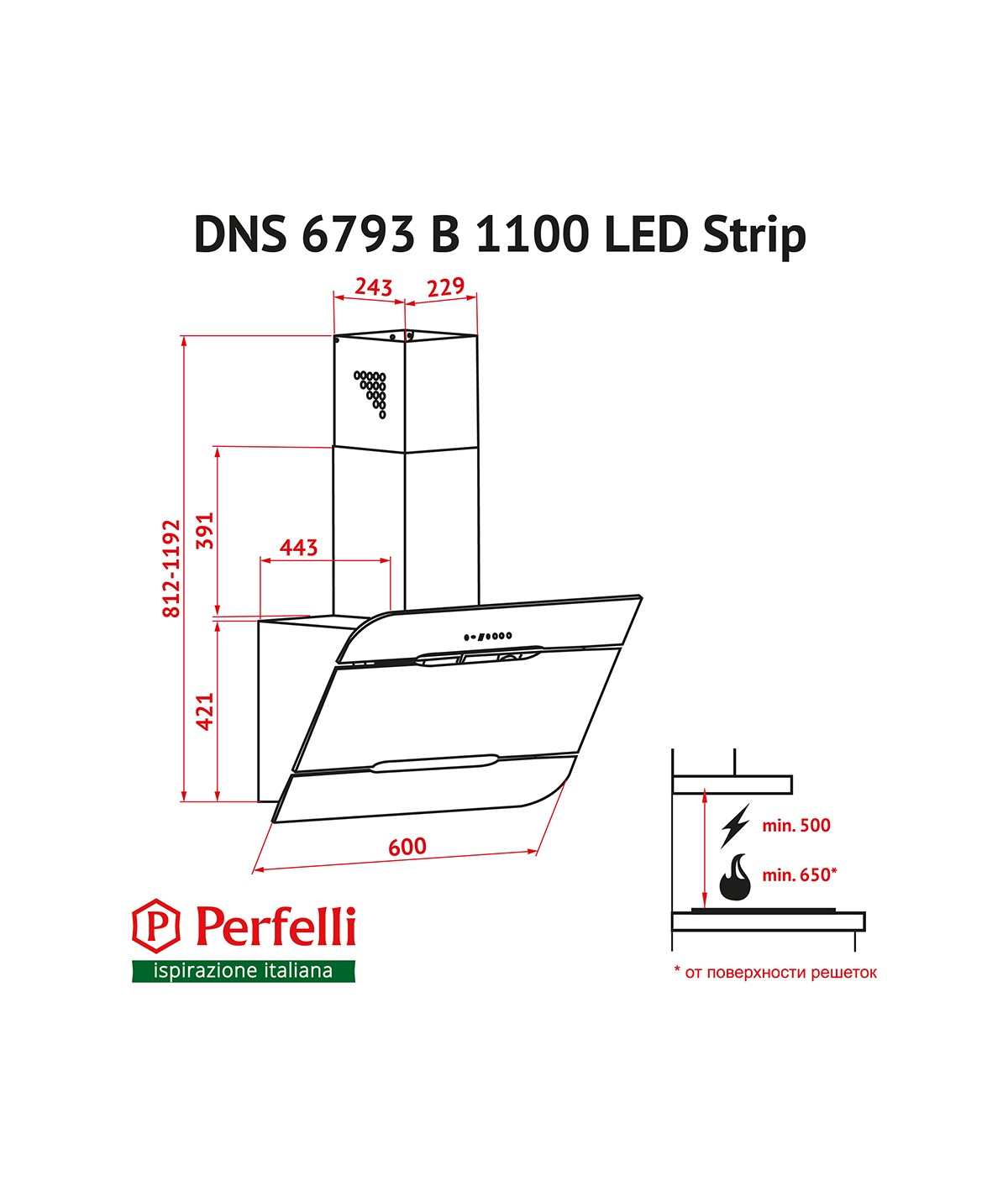 Витяжка Perfelli DNS 6793 B 1100 BL LED Strip