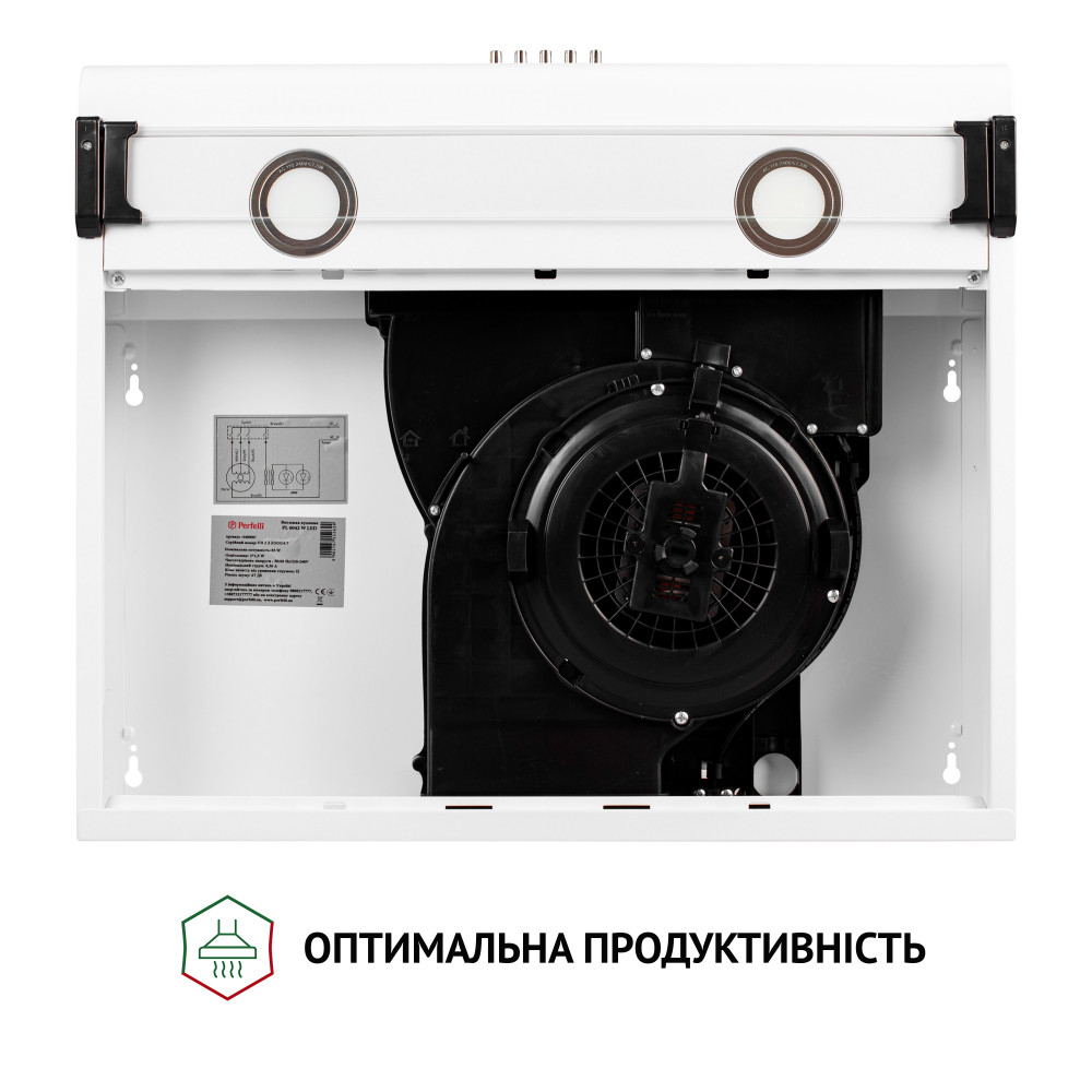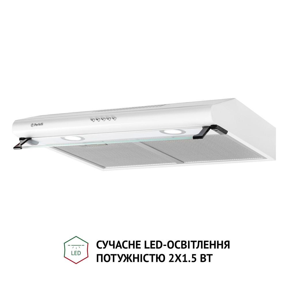 Кухонна витяжка Perfelli PL 6042 W LED працює на трьох швидкостях, що дозволяє обирати потрібну інтенсивність очищення повітря, залежно від його забрудненості.