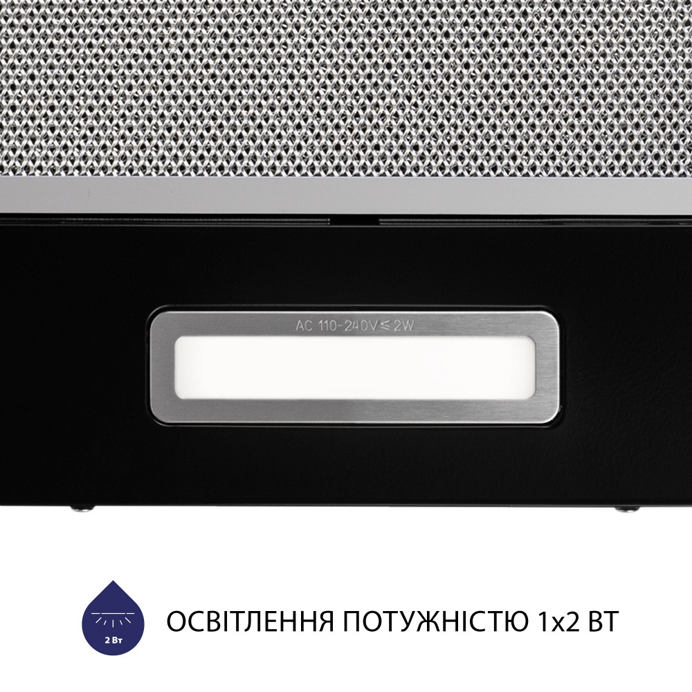 Кухонна витяжка обладнана LED-лампою потужністю 2 Вт. Світлодіоди забезпечують комфортне додаткове освітлення варильної поверхні і є найбільш економним джерелом світла.