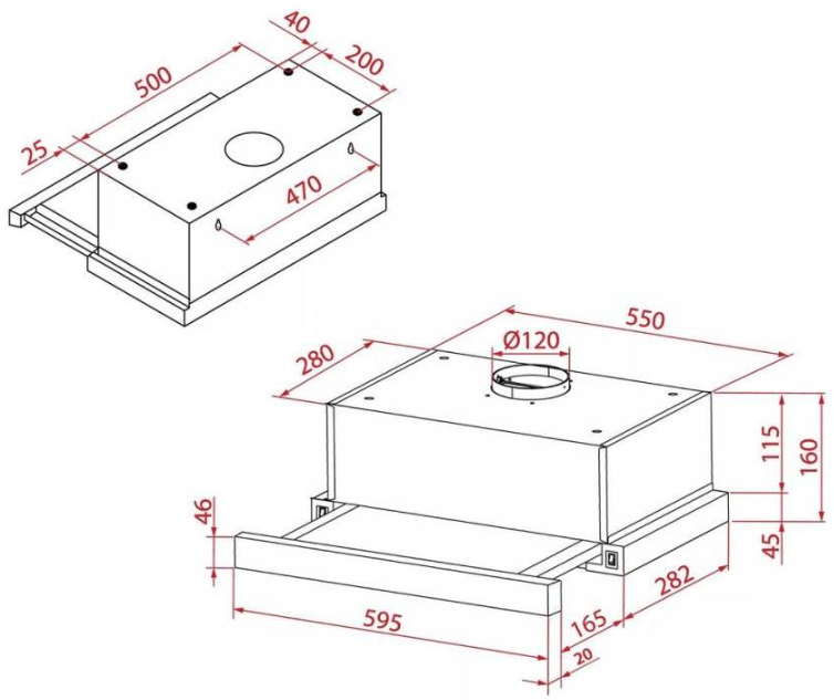 Тип товаруВстраиваемая вытяжка телескопическая