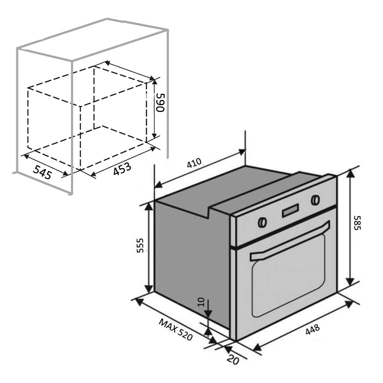 Реализована тангенциальная система вентиляции, охлаждающая духовку после окончания работы, чтобы избежать образования конденсата на мебели.