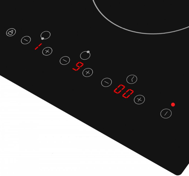 Таймер дозволяє запрограмувати час роботи кожної зони нагріву від 1 до 99 хвилин. Коли час закінчується, варильна поверхня вимкнеться та сповістить про це звуковим сигналом.
