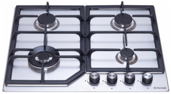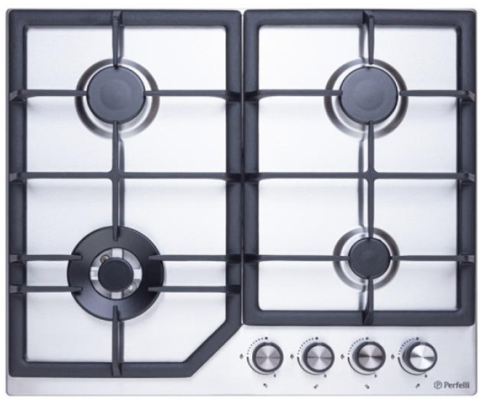 Газовая варочная поверхность Perfelli HGM 61624 – идеальное соотношение качественных комплектующих и функциональности. Материал поверхности изготовлен из нержавеющей стали. Варочная панель оборудована четырьмя газовыми горелками: одной WOK с мощностью – 3.8 кВт, двумя средней мощности и одной вспомогательной.