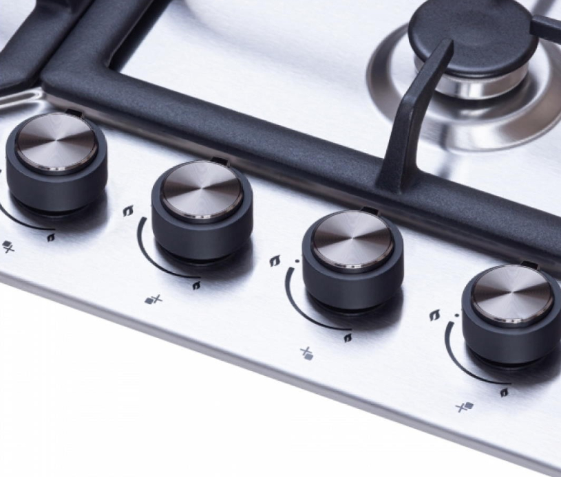 Прибор оснащен функцией кнопки питания в ручках управления, системой безопасности "газ-контроль", а также WOK горелкой – для вашего удобства в приготовлении блюда. Эргономичное расположение горелок обеспечивает дополнительный комфорт при использовании нескольких зон одновременно.
