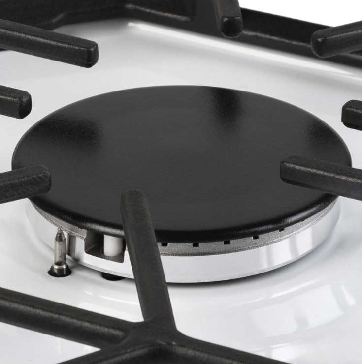 Основа варочной поверхности – белый эмалированный металл. Этот материал обладает высокой стойкостью к коррозии и температурным перепадам. Он является традиционным материалом для изготовления кухонной техники, а его качество и надежность проверены годами.