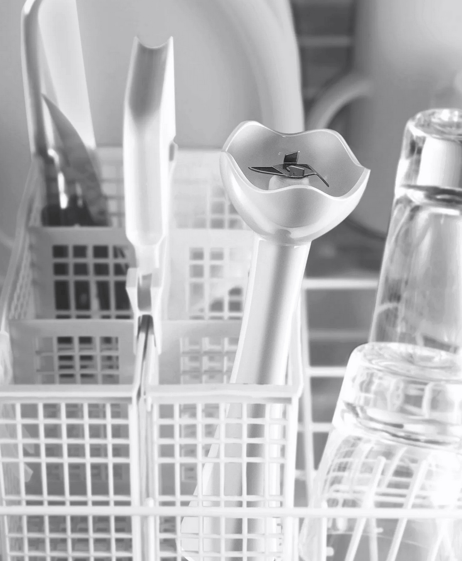 ДополнительноНизкий уровень шума, кнопка для отсоединения насадок, ножка без отверстий для предупреждения разбрызгивания