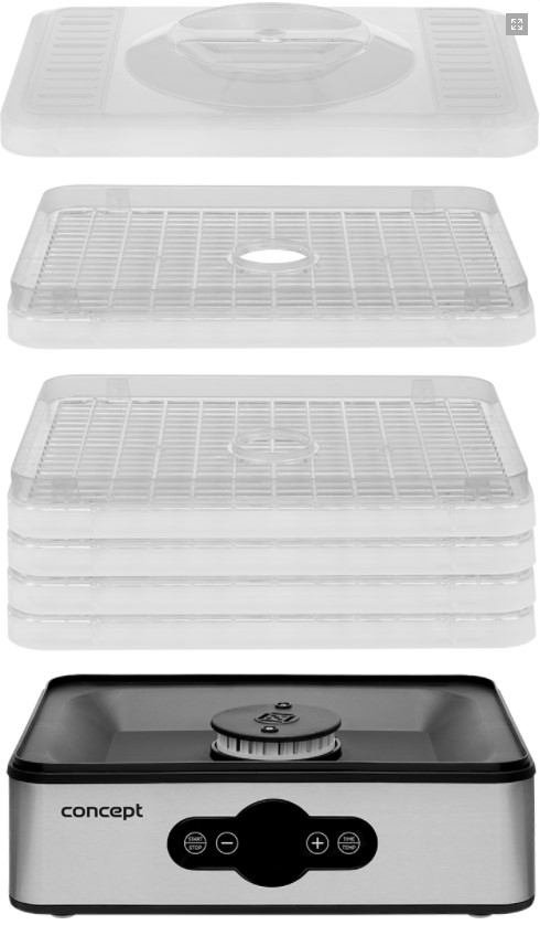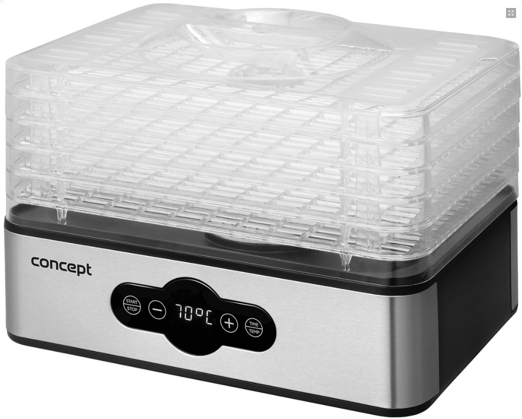 Благодаря простому цифровому управлению сушилкой CONCEPT SO1011 может управлять кто угодно . Регулировка температуры от 35 до 70 ° C позволит регулировать сушку в зависимости от продукта. В устройстве есть таймер, который можно установить на 99 часов , так что вы полностью контролируете сушку. По истечении установленного времени сушильная машина автоматически выключится.