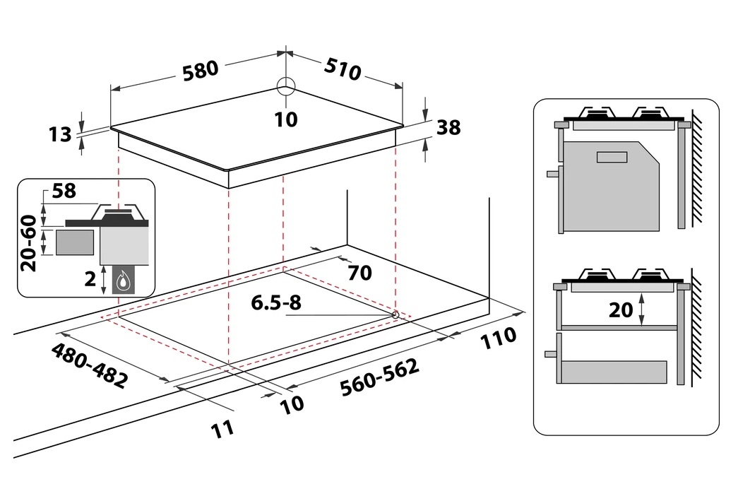 | Размеры для встраивания (ШхГ) | 560-562 х 480-482 |
