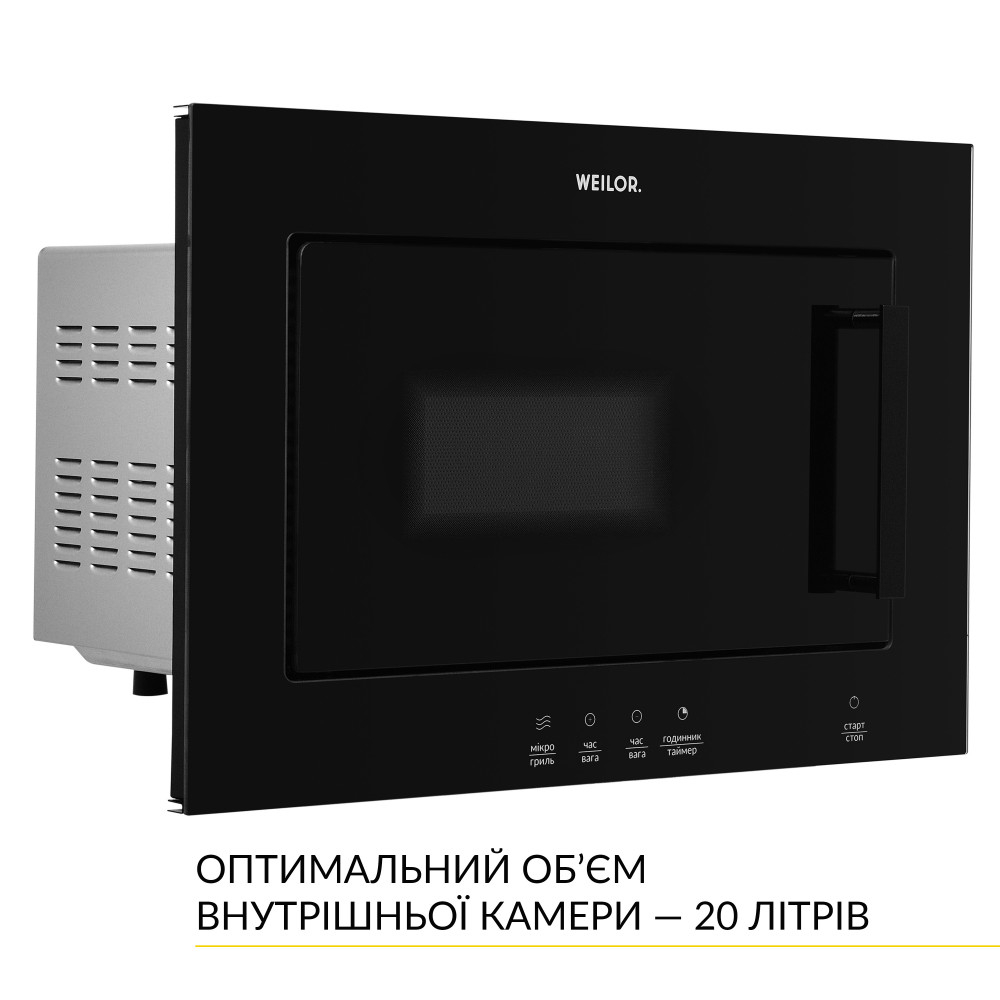 Микроволновая печь WEILOR WBM 2041 GB – не только незаменимая помощница на кухне, но и ее настоящее украшение. Установить эту микроволновку можно в навесной шкаф, благодаря ее стандартным размерам.