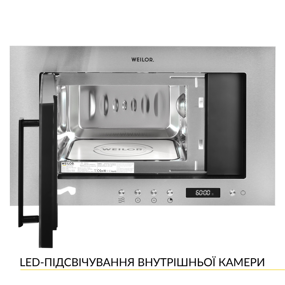 Встроенная микроволновка WEILOR WBM 2041 GSS удивляет своей технологичностью и удобством в эксплуатации! Она оборудована инновационной системой равномерного распределения микроволн, исключающей необходимость использования поворотного стола для разогрева блюд и продуктов.
