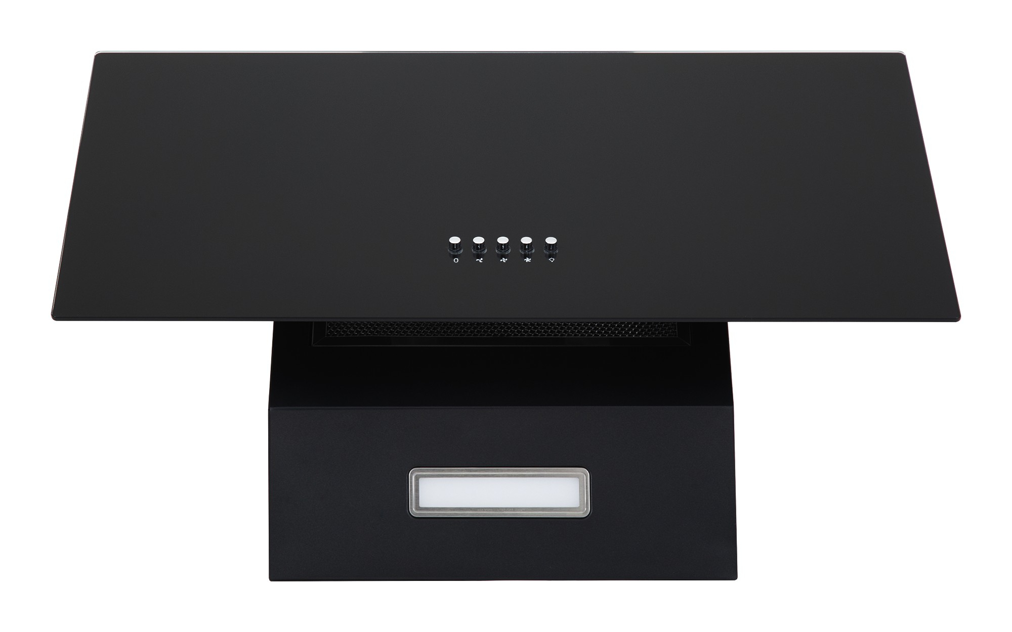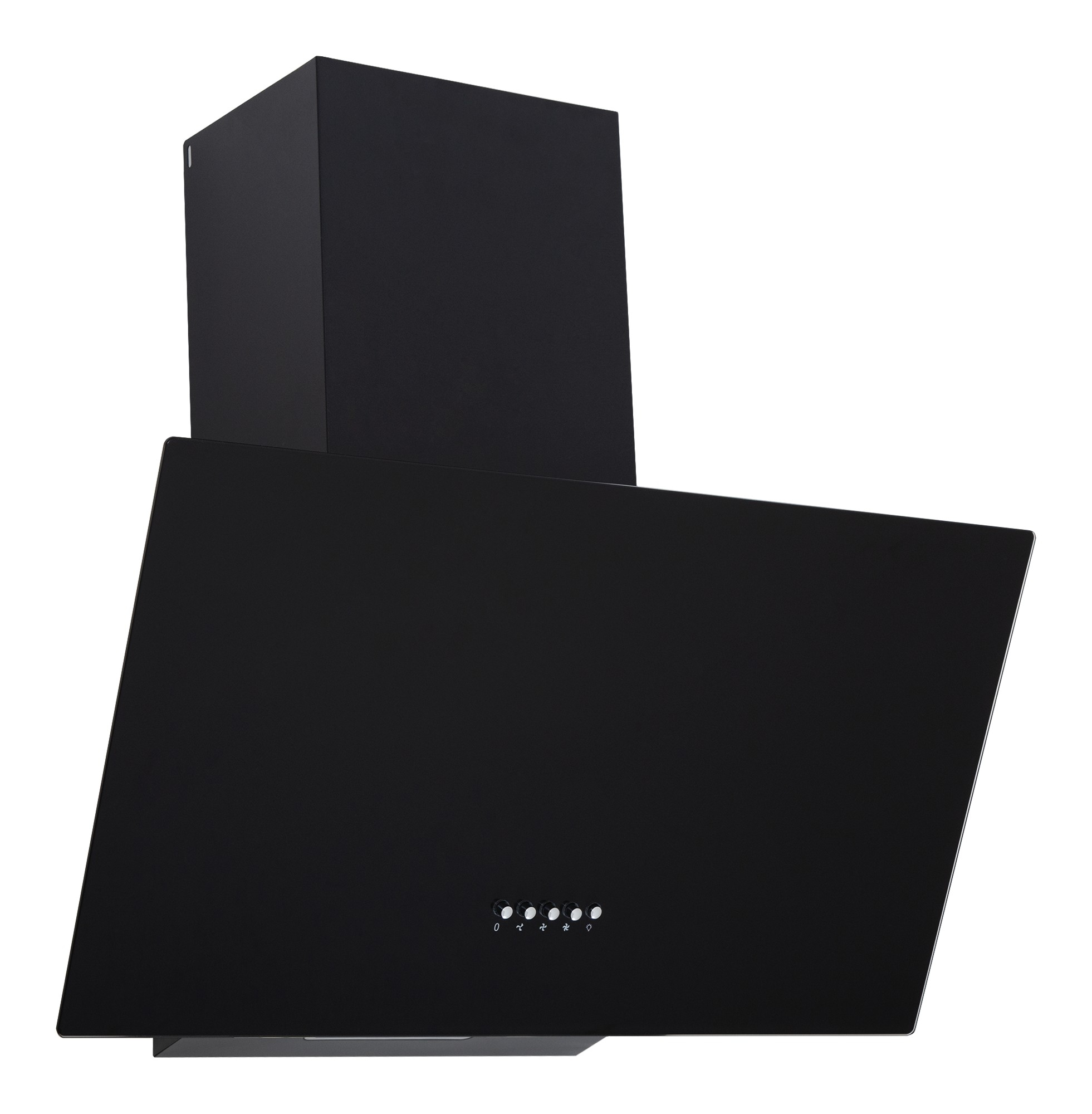 Минималистичная наклонная настенная вытяжка. Фасады выполнены из стекла черного цвета шириной 60 см. Такая вытяжка прекрасно подойдет для небольшой кухни площадью до 20 кв.